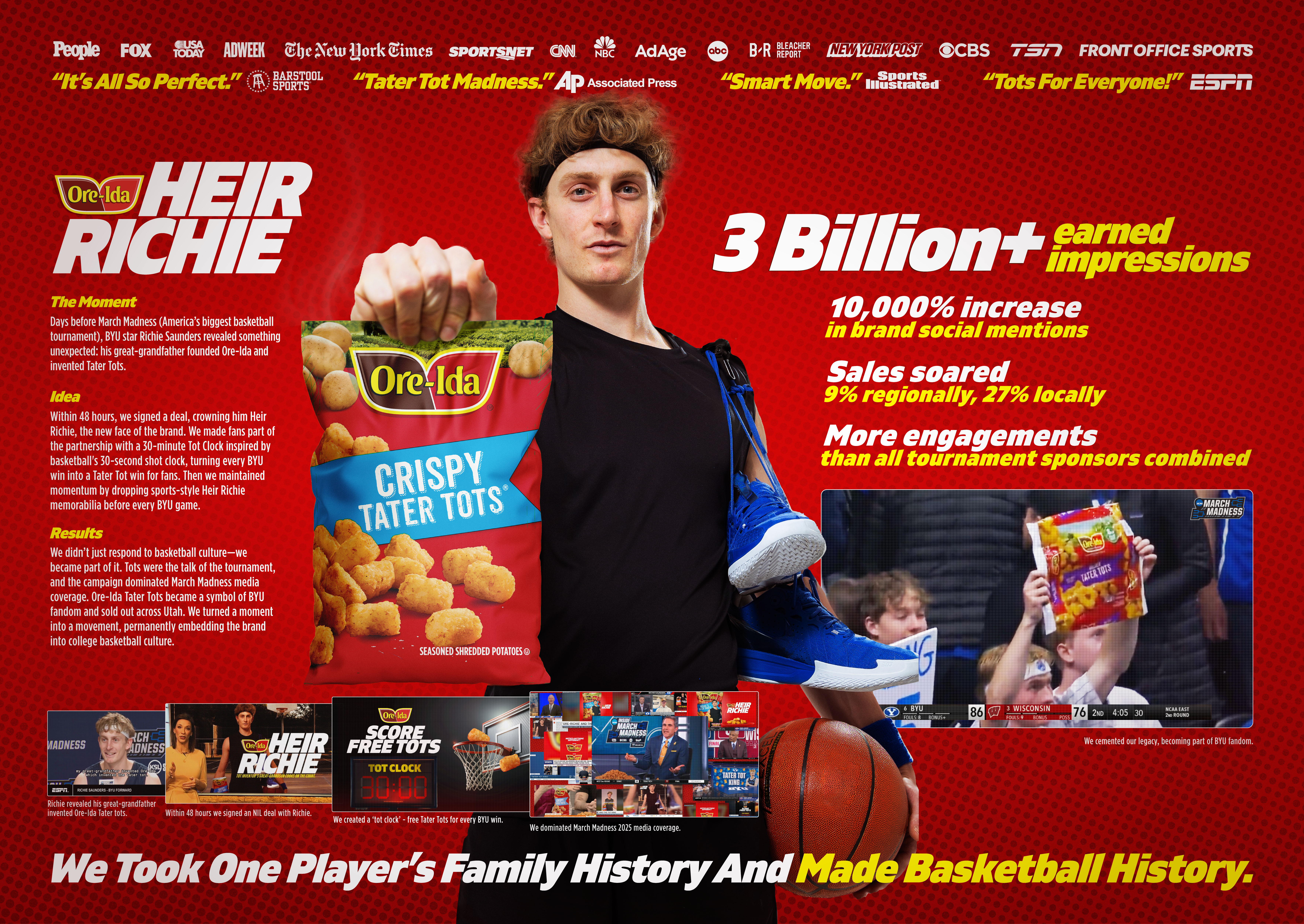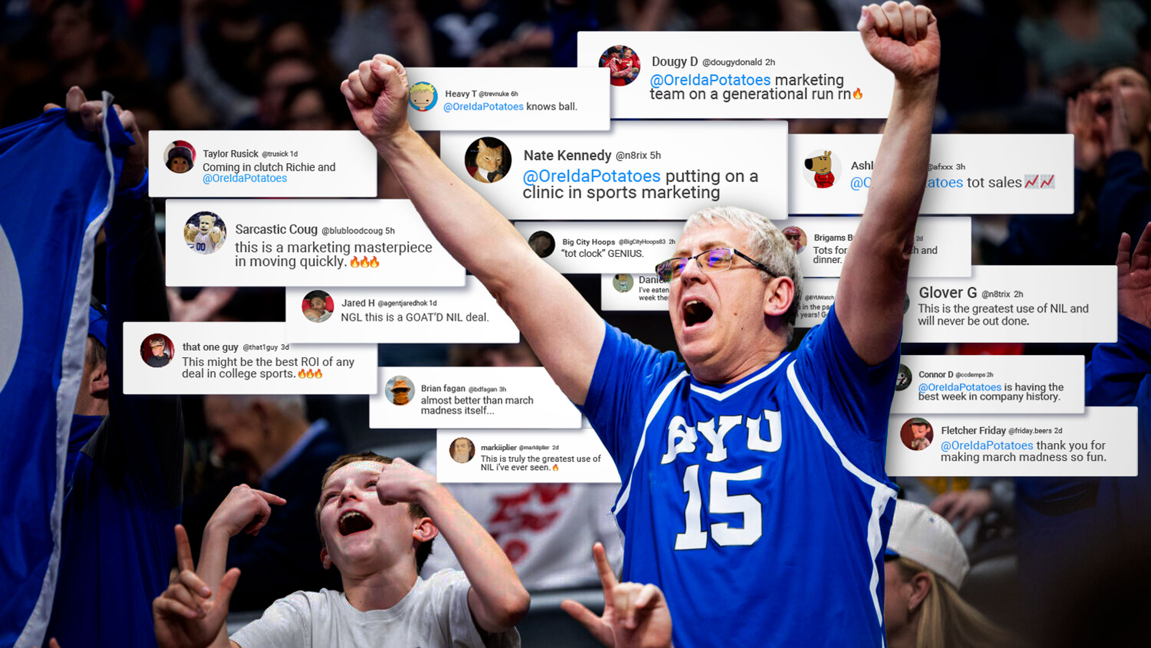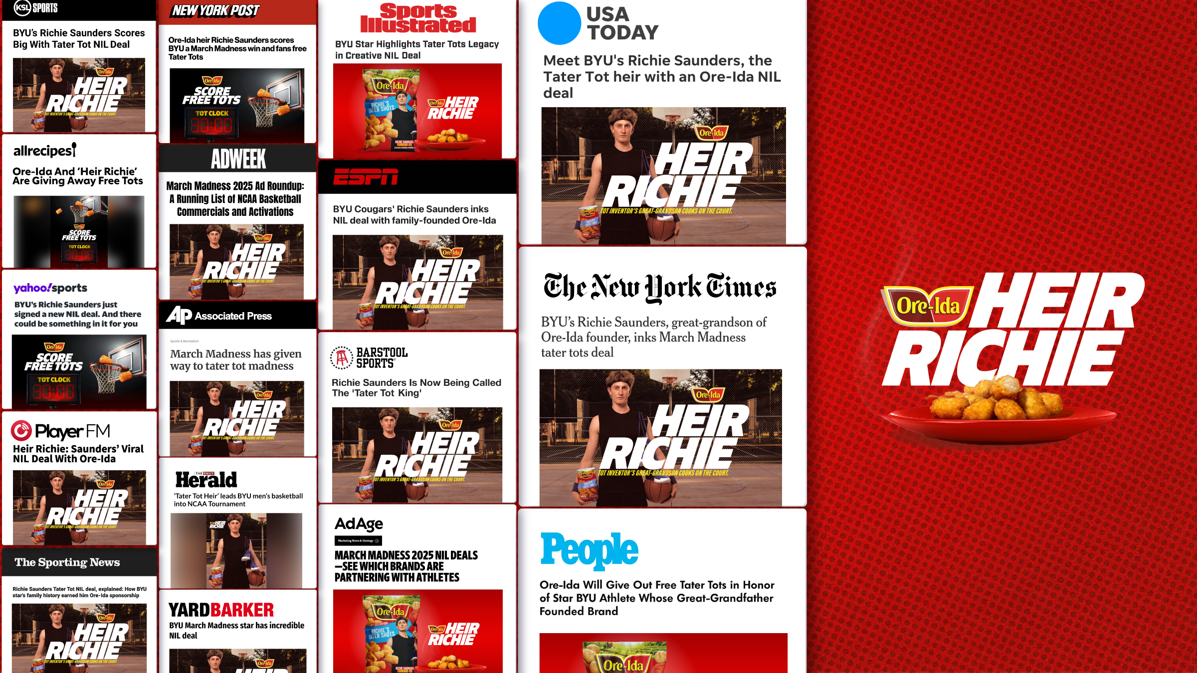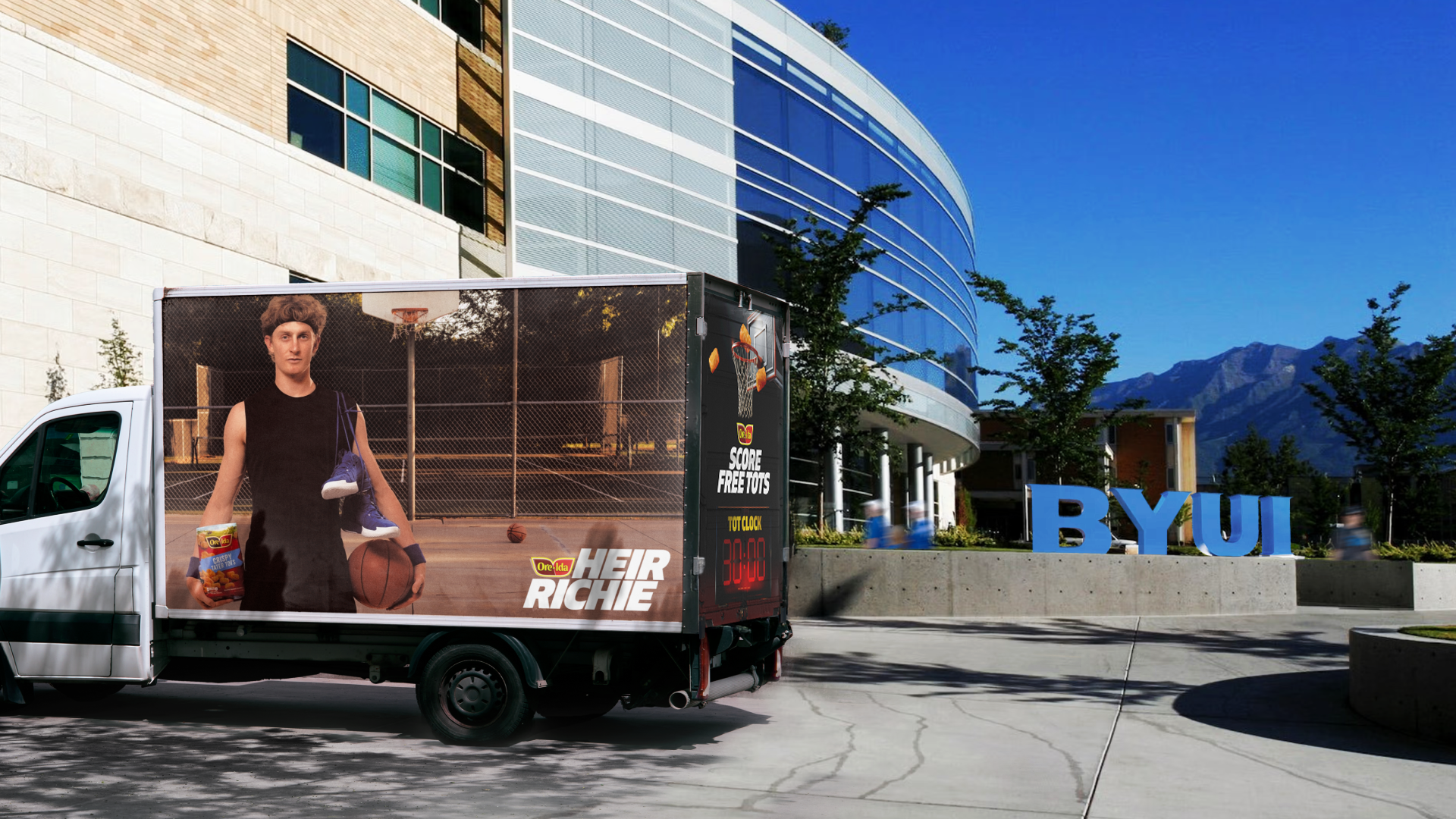 Within 48 hours, we locked in an NIL deal and dubbed him 'Heir Richie'. Then, just in time for March Madness, we created Heir Richie memorabilia, along with a 'tot clock' where fans could cash in on free tots every time BYU snagged a win.