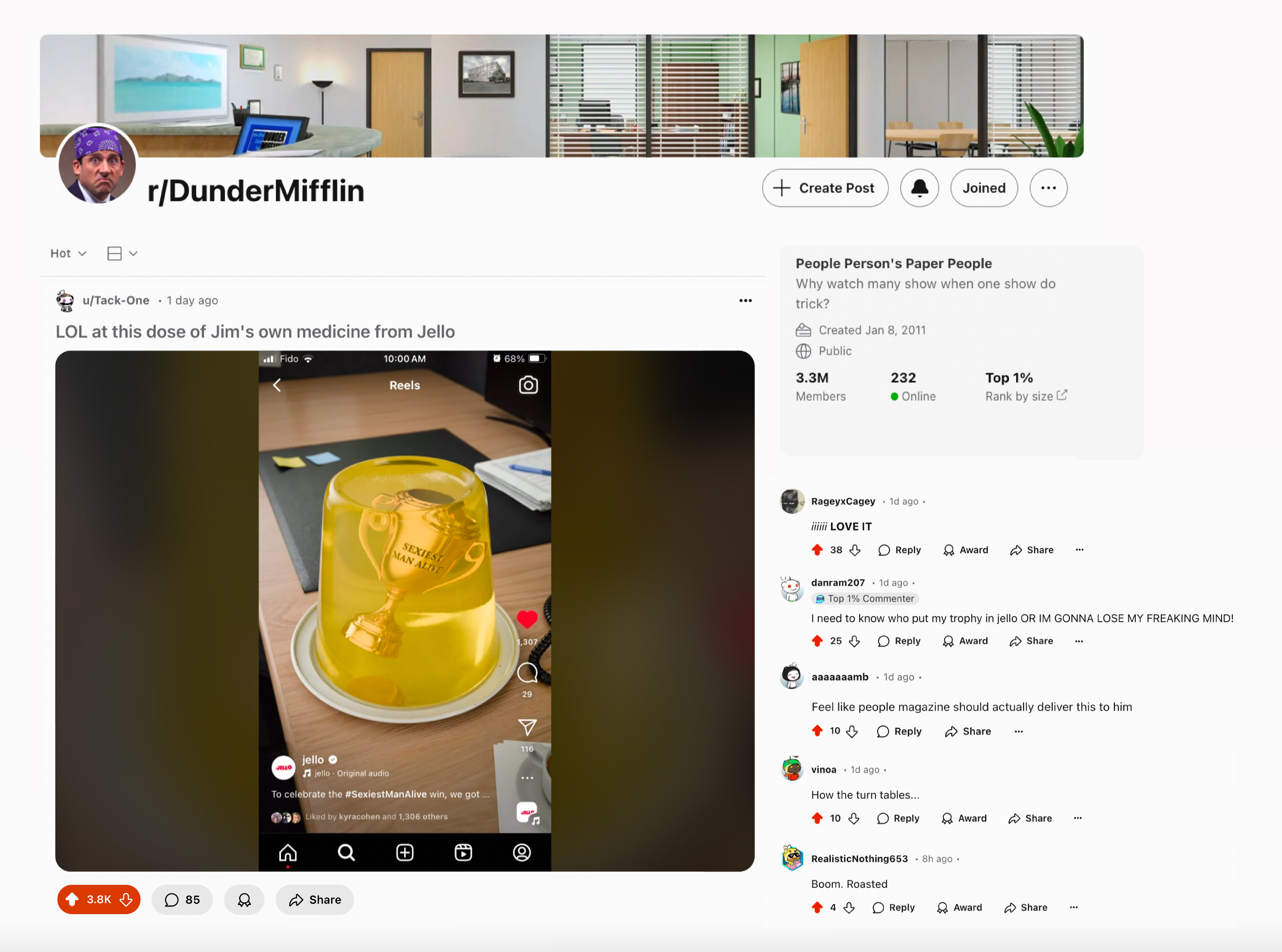 Playing off Jim's notorious 'stapler in JELL-O' prank, we gave him a delicious taste of his own medicine. We even made it to the top of The Office's beloved subreddit!